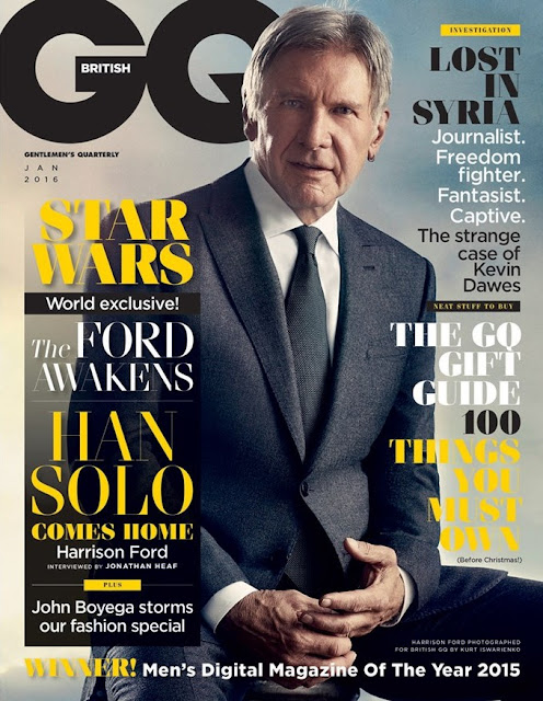 A GQ britânica celebra o regresso ao cinema da saga Star Wars na sua edição de Janeiro. A capa pertence a Harrison Ford (fotografado por Kurt Iswarienko).