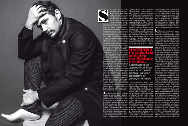 A edição de Setembro de L'Uomo Vogue tem em destaque na sua capa James Franco e Marina Abramovic. O porquê? Porque a artista sérvia fez um documentário sobre James, intitulado James Franco: The Last Unicorn que vai estrear no Festival.