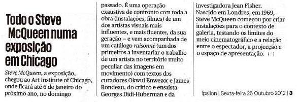 26Out12 Steve McQueen em exposição no Art Institute, Chicago http://www.artic.edu/exhibition/steve-mcqueen link do post comentar favorito Mais para ler
