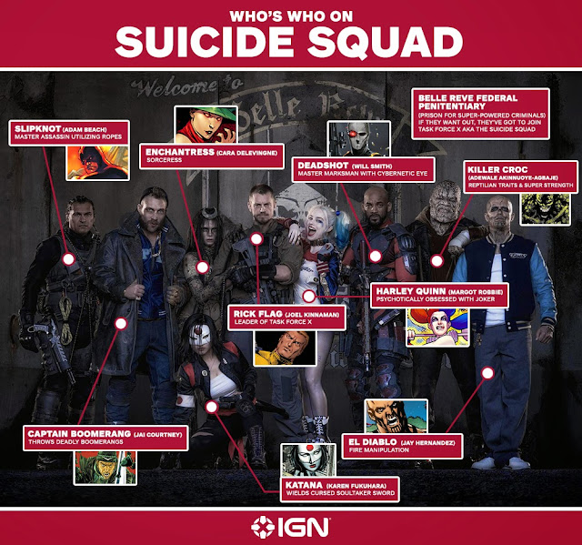 A IGN disponibilizou um amigável e explicativo infográfico para desvendar "quem é quem" na imagem que o realizador David Ayer divulgou do elenco de Suicide Squad.
