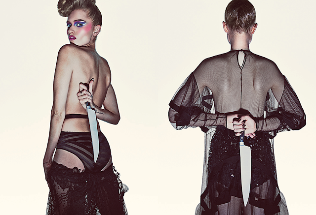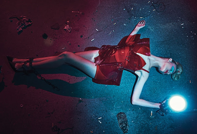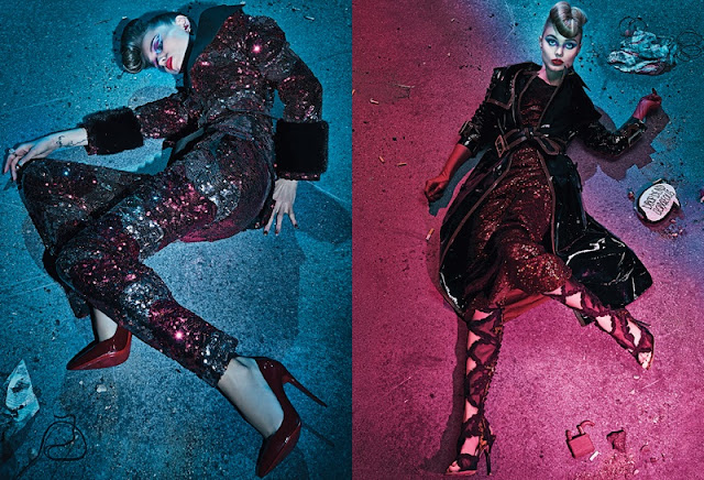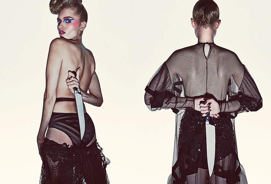 Elle Fanning, Bella Heathcote e Abbey Lee Kershaw posaram para Steven Klein numa inspiração que combina o horror à Moda. O guarda roupa é da responsabilidade de Patti Wilson que apropriadamente seleccionou looks sedutores e dramáticos com assinatura Gucci, Burberry e Preen.